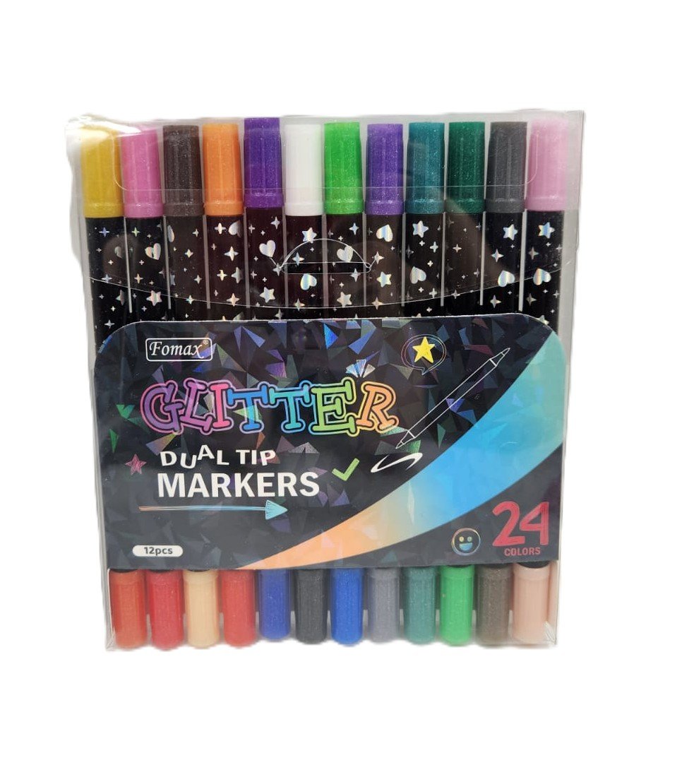 12 marcadores 24 colores. Marcadores punta pincel de colores con glitter para hacer brillar todas tus creaciones.