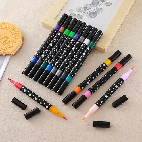 Marcadores doble punta pincel con glitter x24
